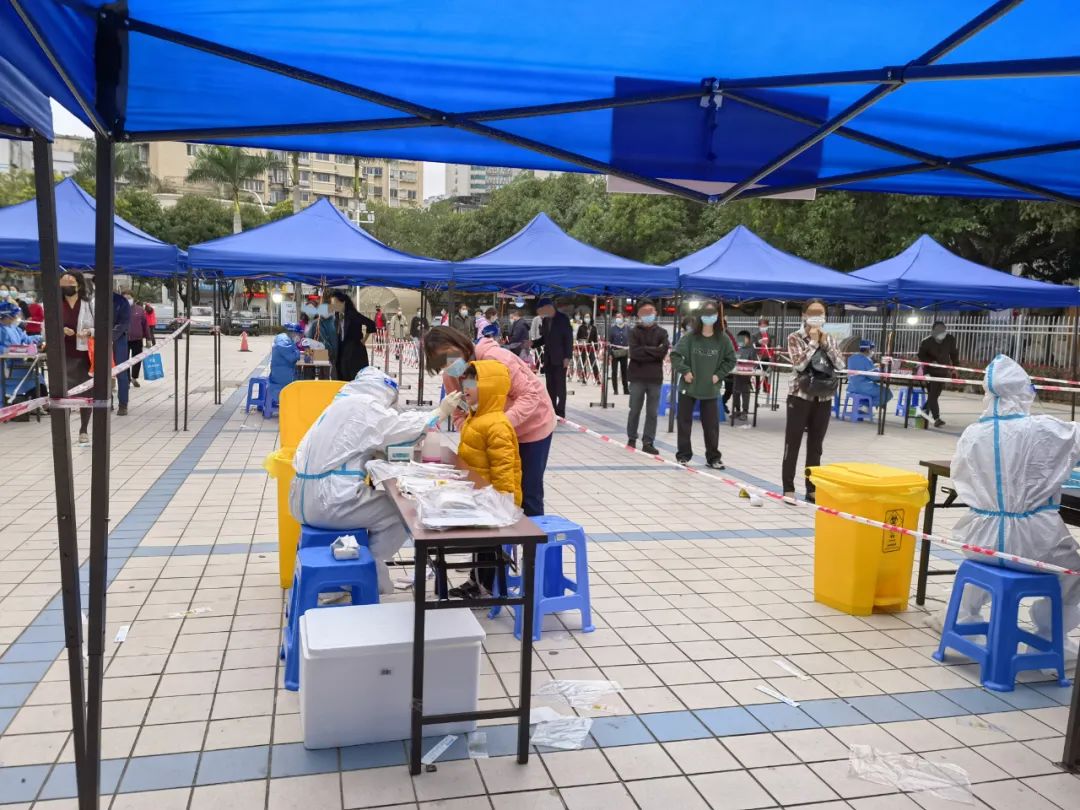 3月20日清晨,福建省人民醫(yī)院派出91名支援倉山區(qū)核酸檢測醫(yī)療隊員參加核酸檢測工作。