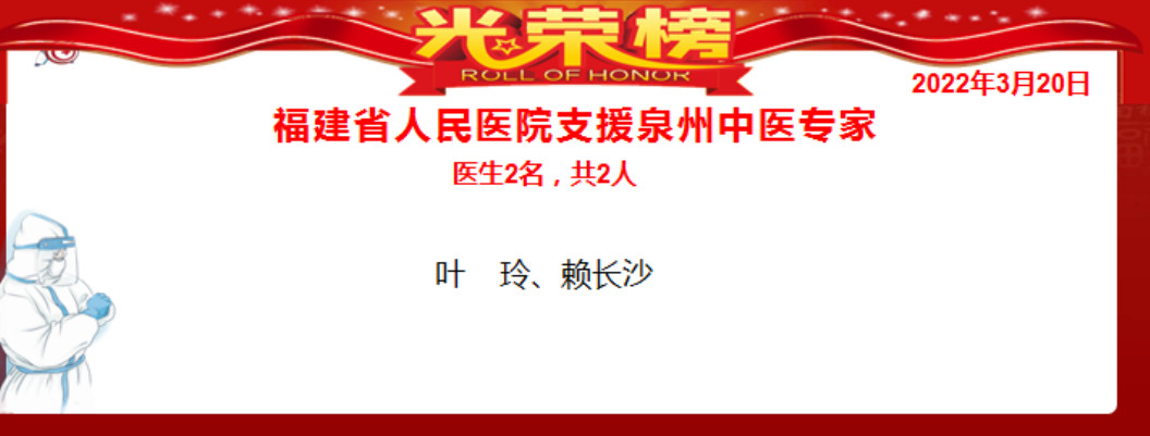 3月20日上午,福建省人民醫(yī)院支援泉州中醫(yī)專家葉玲、賴長沙赴泉指導(dǎo)疫情工作。