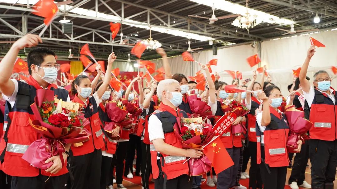院領(lǐng)導(dǎo)班子及中層干部為援滬醫(yī)療隊員獻上鮮花