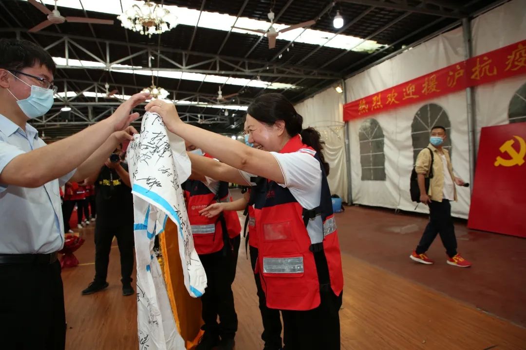 趙紅佳書記向駐地酒店贈送有全體隊員簽名的“戰(zhàn)袍”