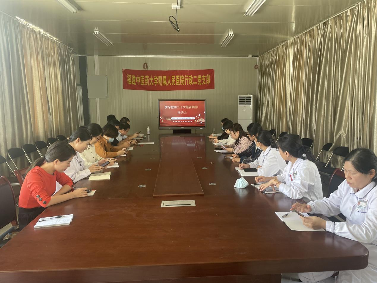 10月21日上午,福建中醫(yī)藥大學(xué)附屬人民醫(yī)院行政二黨支部召開學(xué)習(xí)黨的二十大報(bào)告精神座談會,在崗黨員17人全部參加了本次座談會。會議由黃惠榕書記主持。