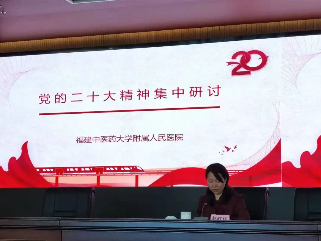 參加會議的黨員干部職工紛紛表示,要把學習宣傳貫徹黨的二十大精神作為當前和今后一個時期的首要政治任務,忠誠擁護“兩個確立”、堅決做到“兩個維護”,要立足崗位,守正創(chuàng)新,踔厲奮發(fā),勇毅前行,主動融入全面建設社會主義現(xiàn)代化國家、全面推進中華民族偉大復興的宏圖偉業(yè)中,主動融入健康中國建設的國家戰(zhàn)略中,主動肩負起促進中醫(yī)藥傳承創(chuàng)新發(fā)展的歷史使命,以高度的責任感和使命感為醫(yī)院高質(zhì)量發(fā)展貢獻力量,以昂揚的精神狀態(tài)、務實的工作作風將黨的二十大精神落到實處。