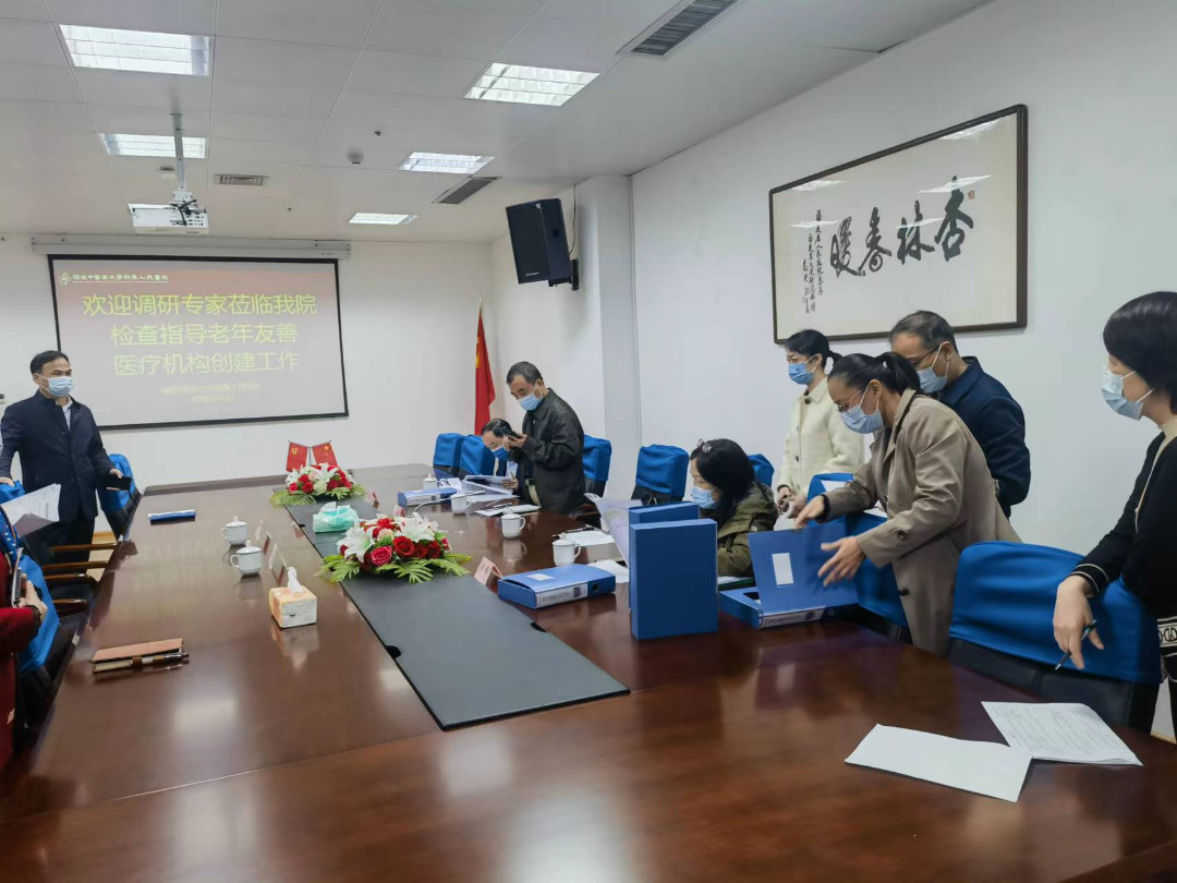 為持續(xù)加強我省老年健康服務(wù)體系建設(shè),優(yōu)化老年人就醫(yī)環(huán)境,方便老年人看病就醫(yī),省衛(wèi)健委組織評審專家一行于2022年12月2日蒞臨我院開展老年友善醫(yī)療機構(gòu)評審工作,我院陳捷院長、李瑋副院長帶領(lǐng)醫(yī)務(wù)處、老年病科、后勤處、宣傳處等相關(guān)科室積極迎檢,通過創(chuàng)評進(jìn)展匯報、專家評審組現(xiàn)場調(diào)研考核,專家組對我院老年友善醫(yī)療機構(gòu)建設(shè)所開展的工作和取得的成績,給予充分肯定。