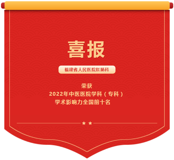 2023年2月19日,中華中醫(yī)藥學會、中國中醫(yī)科學院在北京共同召開《2022年度中醫(yī)醫(yī)院學科(專科)學術(shù)影響力評價研究報告》發(fā)布會暨學科(??疲┙ㄔO(shè)經(jīng)驗交流會。當天,《2022年度中醫(yī)醫(yī)院學科(??疲W術(shù)影響力評價研究報告》正式發(fā)布,福建省人民醫(yī)院肛腸科榮獲2022年中醫(yī)醫(yī)院學科(??疲W術(shù)影響力全國前十名!