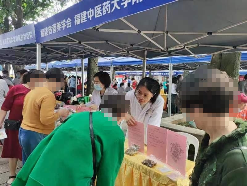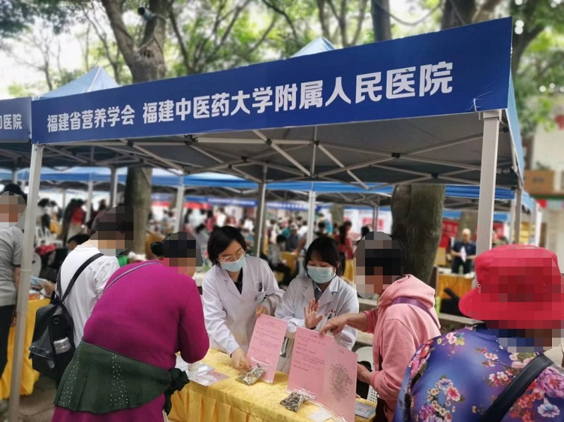 福建省人民醫(yī)院臨床營養(yǎng)科作為其中一個(gè)義診團(tuán)隊(duì),圍繞“合理膳食,食養(yǎng)是良醫(yī)”,結(jié)合福建省人民醫(yī)院的的藥膳、茶飲以及中醫(yī)非藥物療法等特色向現(xiàn)場群眾進(jìn)行科普宣傳,接受群眾咨詢并提供診療服務(wù)?,F(xiàn)場還放置了實(shí)物及展牌,方便群眾學(xué)習(xí)。葉彬華主任還針對(duì)前來咨詢的群眾進(jìn)行一對(duì)一的的體質(zhì)辨識(shí),中醫(yī)辨證論治,為患者提供個(gè)體化的診療。