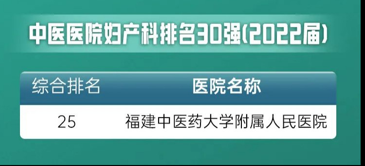 在“國(guó)家衛(wèi)生健康委人才交流服務(wù)中心”6月份公布的“一帶一路”醫(yī)學(xué)人才培養(yǎng)聯(lián)盟婦科內(nèi)鏡醫(yī)師培養(yǎng)項(xiàng)目成員單位遴選工作結(jié)果,福建中醫(yī)藥大學(xué)附屬人民醫(yī)院成功入圍,成為國(guó)家首批項(xiàng)目成員單位。在近日公布的“2022屆中國(guó)醫(yī)院競(jìng)爭(zhēng)力排行榜”系列榜單中,福建中醫(yī)藥大學(xué)附屬人民醫(yī)院在“2022屆中醫(yī)醫(yī)院100強(qiáng)”榜單中光榮上榜,名列第25名;福建中醫(yī)藥大學(xué)附屬人民醫(yī)院婦產(chǎn)科在“2022屆中醫(yī)綜合醫(yī)院??婆判邪瘛敝校瑯s登??婆琶?5強(qiáng)。