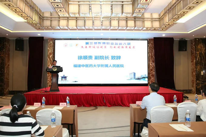 福建中醫(yī)藥大學(xué)附屬人民醫(yī)院副院長徐順貴代表主辦方致辭,他表示,希望這次會議能為大家提供一個(gè)學(xué)習(xí)交流的平臺,通過對醫(yī)師職業(yè)發(fā)展的交流和探討,進(jìn)一步促進(jìn)醫(yī)學(xué)人文學(xué)科交流、助力醫(yī)學(xué)人才培養(yǎng)和青年醫(yī)師成長。