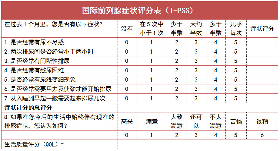 一張表格可以讓父親們判斷自己的前列腺給自己帶了多大的問(wèn)題。