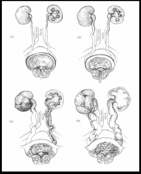 一旦失治誤診,隨著下尿路梗阻癥狀的加重,下尿路本身可能繼發(fā)感染出現(xiàn)膀胱炎、尿道炎,甚至產(chǎn)生原發(fā)性膀胱結(jié)石,膀胱的儲(chǔ)尿排尿功能紊亂出現(xiàn)尿潴留及充盈性尿失禁,嚴(yán)重時(shí)引起上尿路的損害,出現(xiàn)輸尿管擴(kuò)張、腎積水、腎功能損害等表現(xiàn)。
