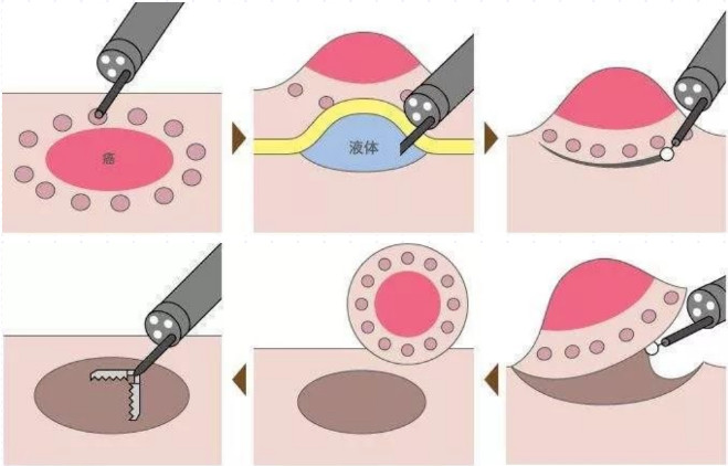 早癌早診早治,如果經(jīng)內(nèi)鏡篩查,發(fā)現(xiàn)了消化系早癌或癌前病變,無(wú)需緊張。消化道早癌可以在內(nèi)鏡下微創(chuàng)切除完成根治,這就是內(nèi)鏡黏膜下剝離術(shù)(ESD)。