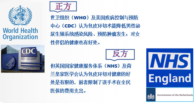 其實(shí)在這個(gè)問題上不同的國家地區(qū)都有爭議呢,世界衛(wèi)生組織美國疾病控制與預(yù)防中心認(rèn)為包皮環(huán)切術(shù)能降低男性泌尿生殖系統(tǒng)感染風(fēng)險(xiǎn)、預(yù)防腫瘤發(fā)生;對女性伴侶的健康也有好處,但英國國家健康服務(wù)體系及荷蘭皇家醫(yī)學(xué)會(huì)認(rèn)為包皮環(huán)切對健康的好處是有限的。