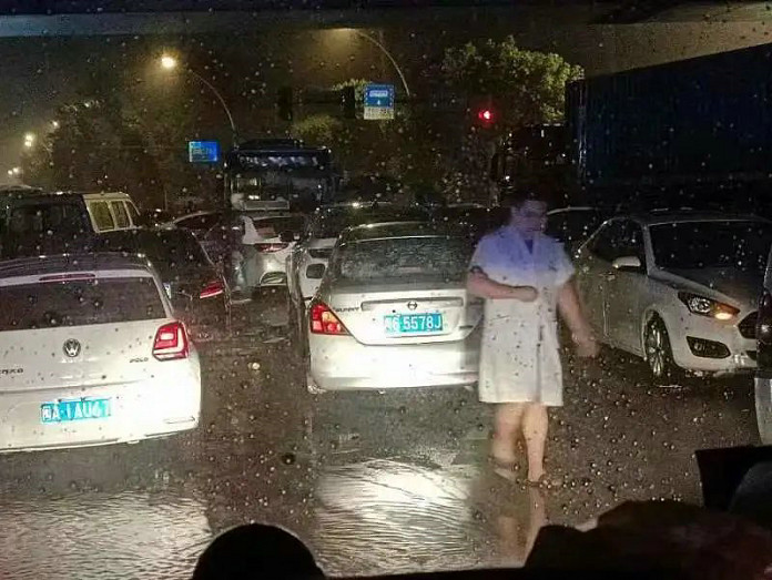 神經(jīng)內(nèi)科馮美平護士本應前往醫(yī)院接下夜班,但由于道路積水嚴重,她被堵在上班的路上數(shù)小時,無法按時到達醫(yī)院。