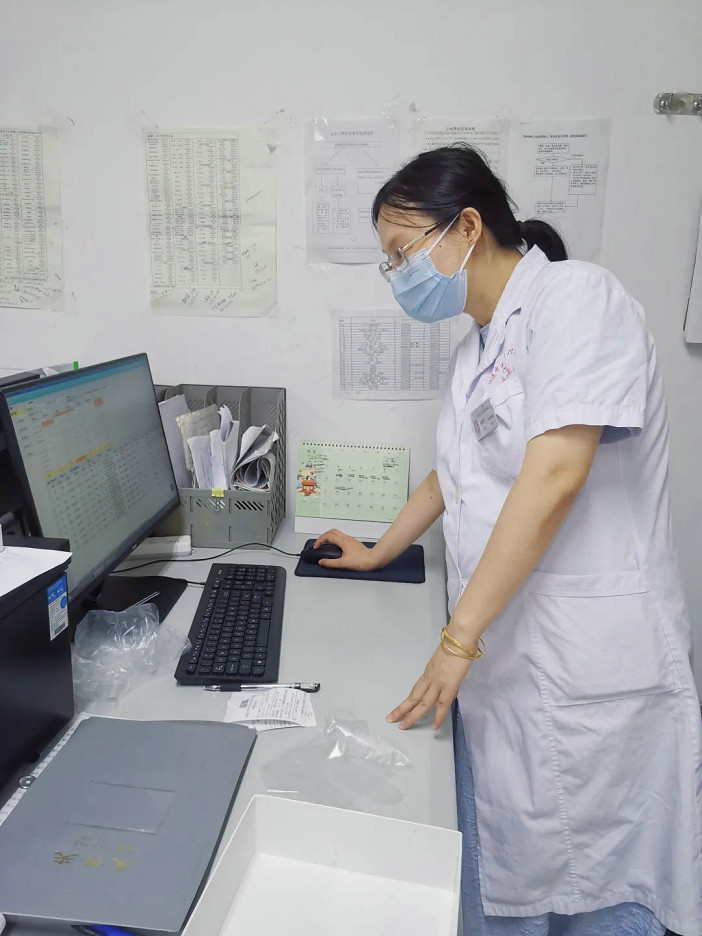 張麗楓醫(yī)生換上工作服和拖鞋堅持工作