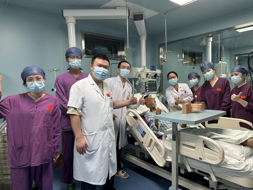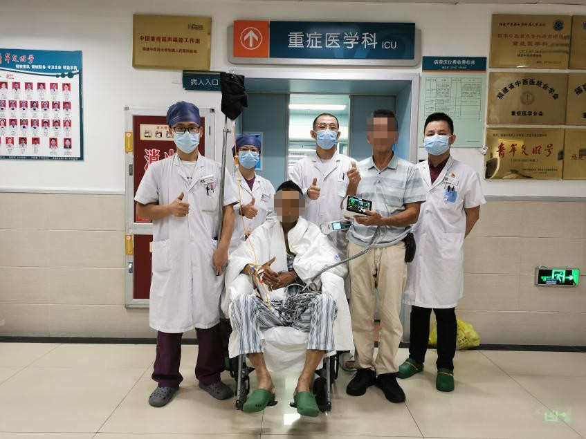 上機(jī)只是第一步,患者身上還有因為心臟泵功能衰竭及免疫功能極度低下導(dǎo)致的肝腎功能衰竭、侵襲性曲霉菌、吸入性肺炎等一個個“炸彈”,都需要排除。醫(yī)護(hù)團(tuán)隊全天候?qū)颊哌M(jìn)行呼吸支持、循環(huán)評估、臟器功能保護(hù)、鎮(zhèn)痛、鎮(zhèn)靜、抗凝管理、原發(fā)病治療、康復(fù)治療、營養(yǎng)支持等等,每一項環(huán)節(jié)嚴(yán)格把控,攻克一個個難關(guān),僅僅48小時就成功撤除了CRRT治療,96小時各項指標(biāo)達(dá)到ECMO撤機(jī)標(biāo)準(zhǔn),并成功撤機(jī)拔管。經(jīng)過全科醫(yī)護(hù)人員的努力,在祖國生日來臨之際,翁某拔除了氣管導(dǎo)管,也迎來了自己的新生,他豎著大拇指對在場的醫(yī)護(hù)人員說,謝謝你們,給我第二次生命!