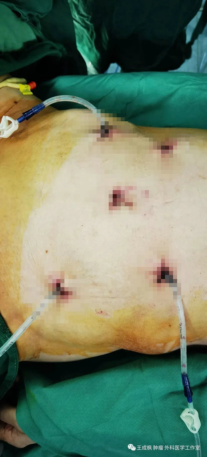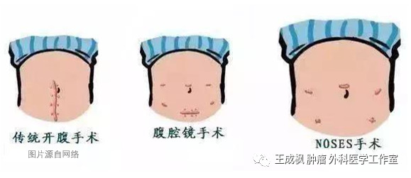 ③NOSES手術(shù),標(biāo)本經(jīng)自然腔道取出,腹部只有5個1厘米的穿刺孔,避免了腹部一個5厘米的切口(原本用于取標(biāo)本),患者術(shù)后幾乎無傷口疼痛,術(shù)后第1天即可下地行走,有利于術(shù)后的快速康復(fù)。