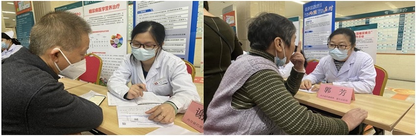 在1號樓門診大廳,科室謝瑜主任攜專家團(tuán)隊迅速做好準(zhǔn)備工作,耐心為前來咨詢的群眾一對一把脈問診,答疑解惑。針對糖尿病患者,通過評估糖尿病并發(fā)癥情況,進(jìn)行用藥和健康指導(dǎo),避免糖尿病并發(fā)癥尤其是心腦血管等嚴(yán)重并發(fā)癥的發(fā)生及進(jìn)展。針對非糖尿病患者,為其評估未來患糖尿病的風(fēng)險因素,從預(yù)防角度指導(dǎo)他們改善生活方式,合理管理體重,清淡飲食,遠(yuǎn)離煙酒,降低未來患糖尿病的風(fēng)險。