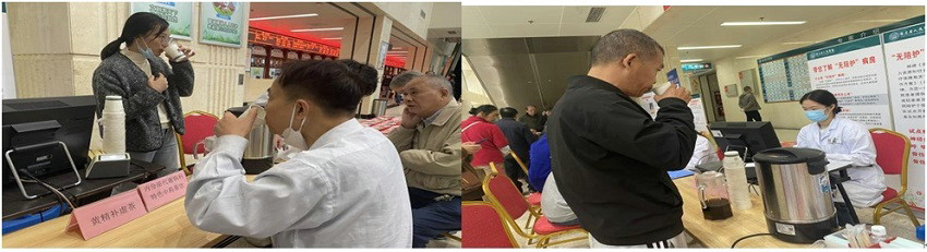 義診現(xiàn)場,醫(yī)護(hù)人員為群眾和糖尿病患者進(jìn)行免費(fèi)測血糖、血壓,免費(fèi)品嘗糖尿病養(yǎng)生茶飲,免費(fèi)體驗耳穴壓豆等非藥物治療,義診專家們盡職盡責(zé),熱情認(rèn)真地接診每一位前來咨詢的群眾,耐心講解了有關(guān)糖尿病等方面的防治知識,還針對患者的不同病癥和個體差異給予合理的診療建議、指導(dǎo)用藥,做到“未病先防”、“既病防變”、“預(yù)后防復(fù)”。