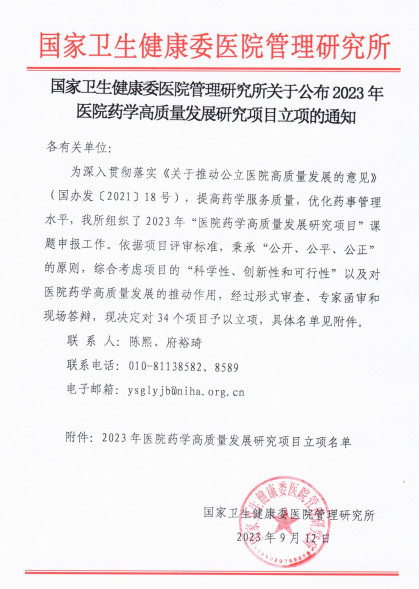 近年來(lái),藥學(xué)部臨床藥學(xué)室在醫(yī)院領(lǐng)導(dǎo)下,強(qiáng)化專(zhuān)業(yè)內(nèi)涵建設(shè),注重科研創(chuàng)新,學(xué)科影響力持續(xù)提升。該項(xiàng)目獲批國(guó)家衛(wèi)生健康委醫(yī)院管理研究所資助,將進(jìn)一步助力我院臨床藥學(xué)學(xué)科建設(shè),提升臨床藥學(xué)服務(wù)質(zhì)量,優(yōu)化藥事管理水平,持續(xù)推動(dòng)醫(yī)院藥學(xué)事業(yè)高質(zhì)量發(fā)展。