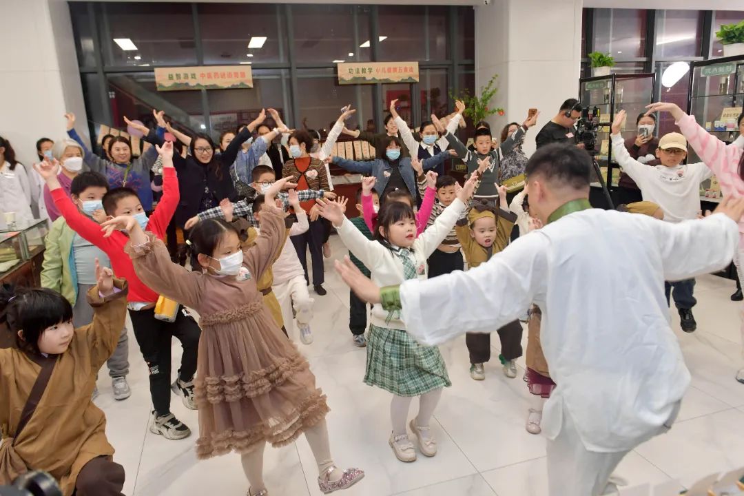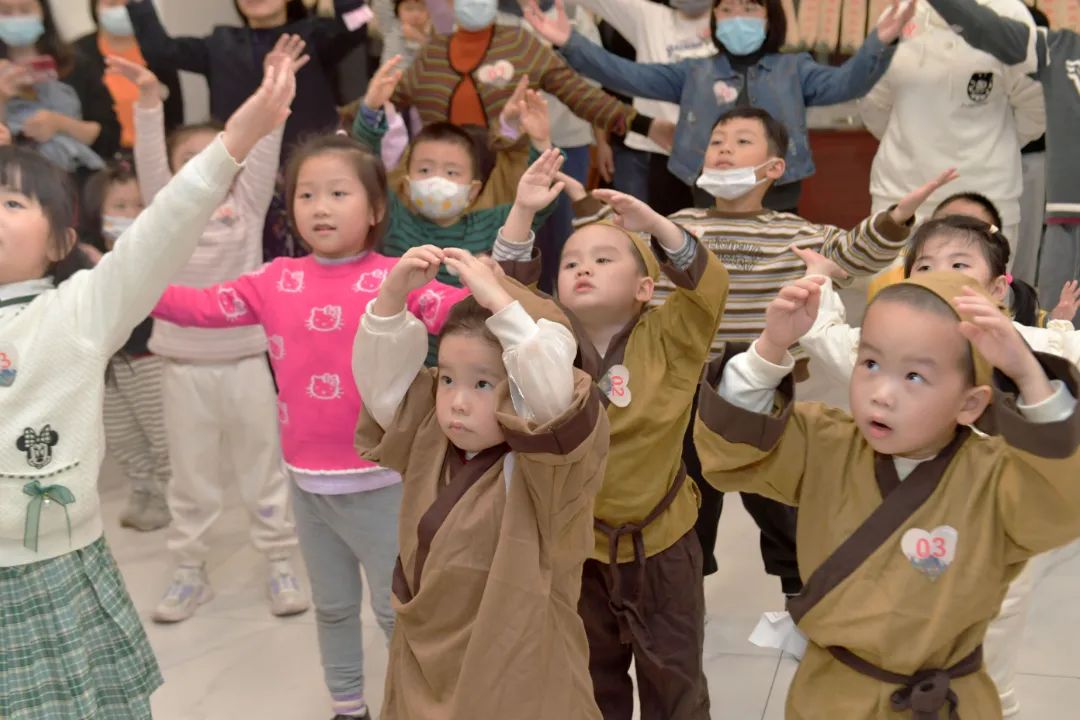 除了中藥,中醫(yī)功法也能提高免疫力。夜校課堂上,針灸科主治醫(yī)師黃承武帶領家長和孩子學習五禽戲中的鳥戲。據介紹,五禽戲是由華佗根據中醫(yī)原理,以模仿虎、鹿、熊、猿、鳥等五種動物的動作和神態(tài)編創(chuàng)的一套功法,其中鳥戲主肺,能補肺寬胸,特別適合在呼吸道疾病高發(fā)期進行鍛煉。