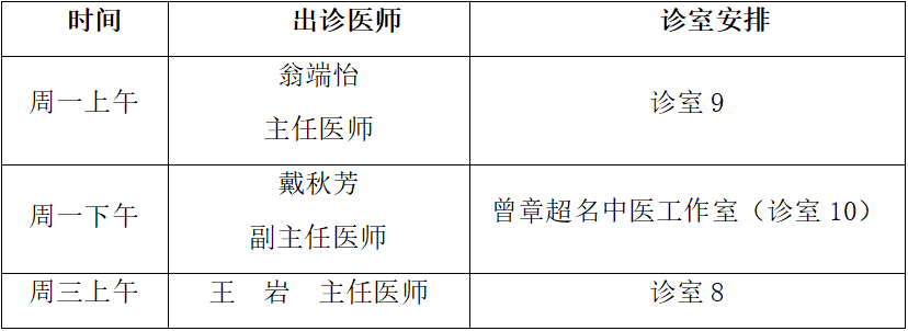 兒童慢性咳嗽/哮喘專病門診出診時(shí)間:周一下午