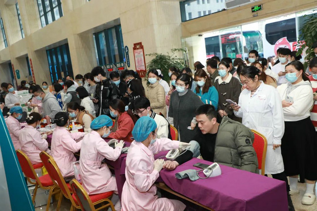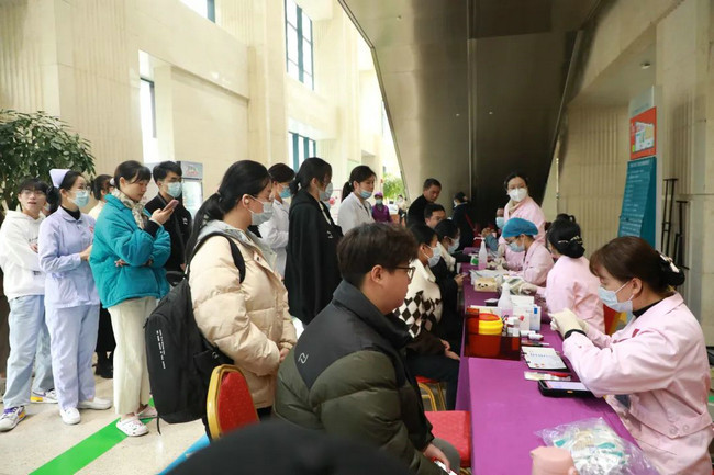 活動現(xiàn)場,醫(yī)護(hù)師生員工在工作人員的指引下,有條不紊地完成信息登記、體檢、初篩檢驗(yàn),確認(rèn)獻(xiàn)血資格后,大家有序登上獻(xiàn)血車,紛紛卷起衣袖……滿含愛心與奉獻(xiàn)的熱血從獻(xiàn)血者的手臂緩緩流向血袋。