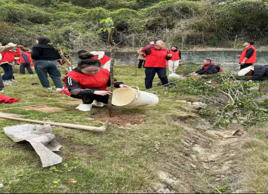 植樹現(xiàn)場,眾人精神煥發(fā),大家分工協(xié)作、相互配合,除草鏟土、扶苗圍堰,熱情高漲、干勁十足,在一片新綠中,“紅馬甲”顯得格外亮眼。據(jù)了解,本次活動共栽下櫻花樹苗五十余株,為中關(guān)村生態(tài)文明建設(shè)增綠添新。