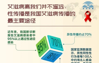 艾滋病離我們并不遙遠,性傳播是我國艾滋病傳播的最主要途徑。不安全性行為是導致艾滋病性傳播的主要原因,艾滋病感染風險較大的不安全性行為包括:沒有保護的男性同性性行為、非固定性伴性行為、有償性行為等。