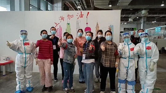 福建援滬醫(yī)療隊(duì)醫(yī)護(hù)人員帶領(lǐng)眾人“八段錦”鍛煉