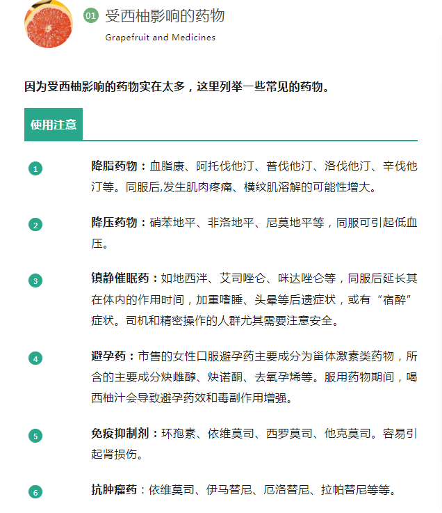西柚被認(rèn)為“藥物公敵” ,據(jù)研究,西柚與超85種藥物發(fā)生相互作用,能影響藥物的藥效和不良反應(yīng),因此,遇到需要長(zhǎng)期服藥或終生服藥的患者,西藥師都會(huì)對(duì)他們進(jìn)行關(guān)于藥物與西柚的用藥教育。