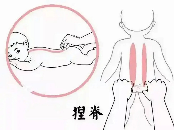 捏脊:從脊柱末端的長強(qiáng)穴自下而上捏提孩子脊柱旁督脈和膀胱經(jīng)兩旁的皮膚,以6遍為宜。此法能調(diào)和陰陽,強(qiáng)身健體,是兒童保健的“王牌手法”。